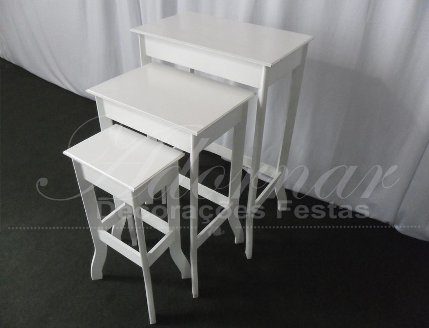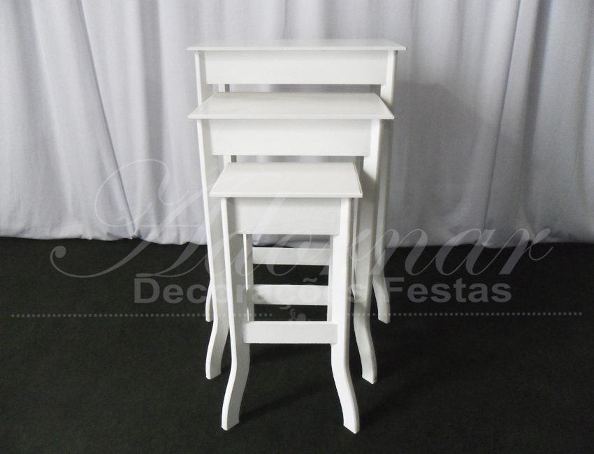 Locação de Trio de Mesas Aparadores em Provençal Para Lembrancinhas. Este trio de mesas aparadores em provençal para lembrancinhas pode ser usada para várias finalidades de decoração de festas. Exemplos: Para Colocar Em Decorações de Todos os Tipos de Eventos. Trio de Mesinhas Aparadores em Provençal Ideal Para Decorar Com Lembrancinhas Personalizadas, Doces e Artigos Para Festas e Eventos.
