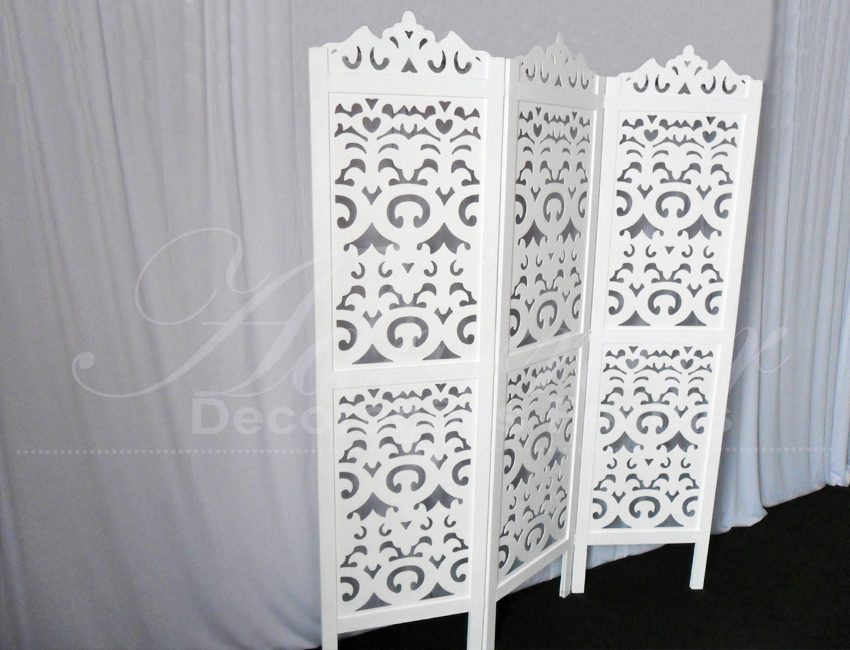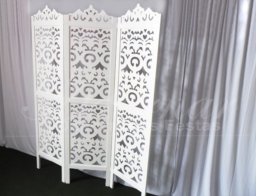 Locação de Biombo Arabesco Branco em Provençal. Este biombo arabesco branco em provençal, pode ser usado para várias finalidades de decoração de festas. Exemplos: Para Colocar Atrás de Mesas Decorativas e Decorações Para Todos os Tipos de Temas Para Festas. Biombo Arabesco Branco em Provençal Dobrável Ideal Para Colocar Como Fundo de Decorações Ou Em Qualquer Outro Lugar Desejado.