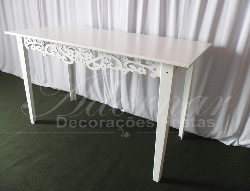 Aluguel de Mesa Floral Grande em Provençal. Esta mesa floral grande em provençal pode ser usada para várias finalidades de decoração de festas. Exemplos: Para Colocar Em Decorações de Todos os Tipos de Eventos. Mesa Floral Grande em Provençal Com os Pés Desmontáveis Ideal Para Decorar Com Bolos, Doces, Salgados e Artigos Para Festas e Eventos.