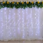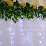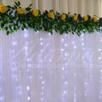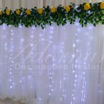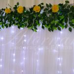 Aluguel de Painel de Cortinas Branco Suporte Duplo Com Cortinário, Led, Folhagens e Flores Amarelas Para Decoração de Festas e Eventos. Este painel de cortinas branco com estrutura, suporte duplo com cortinário, led, folhagens e flores amarelas pode ser usada para várias finalidades de decoração de festas. Exemplos: Para Decorar e Colocar Atrás de Mesas Decorativas e Decorações Para Todos os Tipos de Temas Para Festas. Painel de Cortinário Com Suporte Duplo Desmontável e Regulagem Ideal Para Colocar Como Fundo de Decorações Ou Em Qualquer Outro Lugar Desejado.