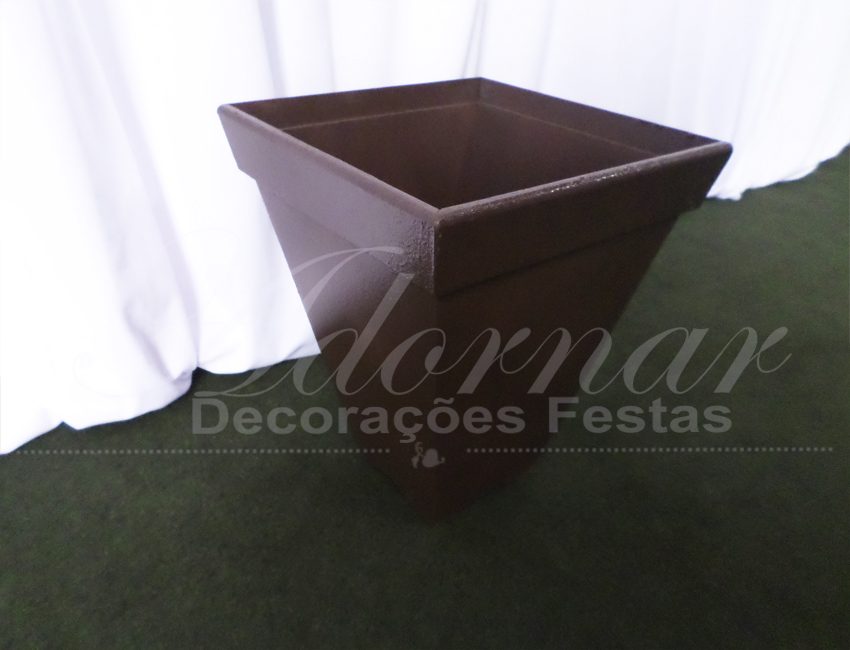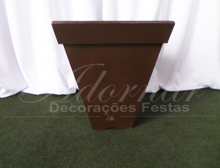 Aluguel de Vaso Cachepô de Chão Pequeno Marrom. Este vaso cachepô de chão pequeno marrom, pode ser usado para várias finalidades de decoração de festas. Exemplos: Para Colocar No Chão Ao Lado e/ou Em Frente de Mesas Decorativas, Vaso Cachepô Ideal Para Colocar Topiarias Buchinhos de Gramas Artificiais e de Flores.