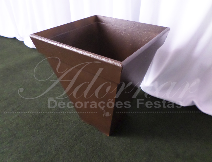 Aluguel de Vaso Cachepô de Chão Pequeno Marrom. Este vaso cachepô de chão pequeno marrom, pode ser usado para várias finalidades de decoração de festas. Exemplos: Para Colocar No Chão Ao Lado e/ou Em Frente de Mesas Decorativas, Vaso Cachepô Ideal Para Colocar Topiarias Buchinhos de Gramas Artificiais e de Flores.
